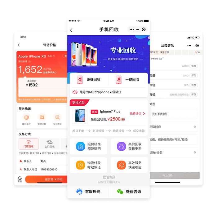 多种回收方式选择;一机一况估价信息;精准匹配就近门店